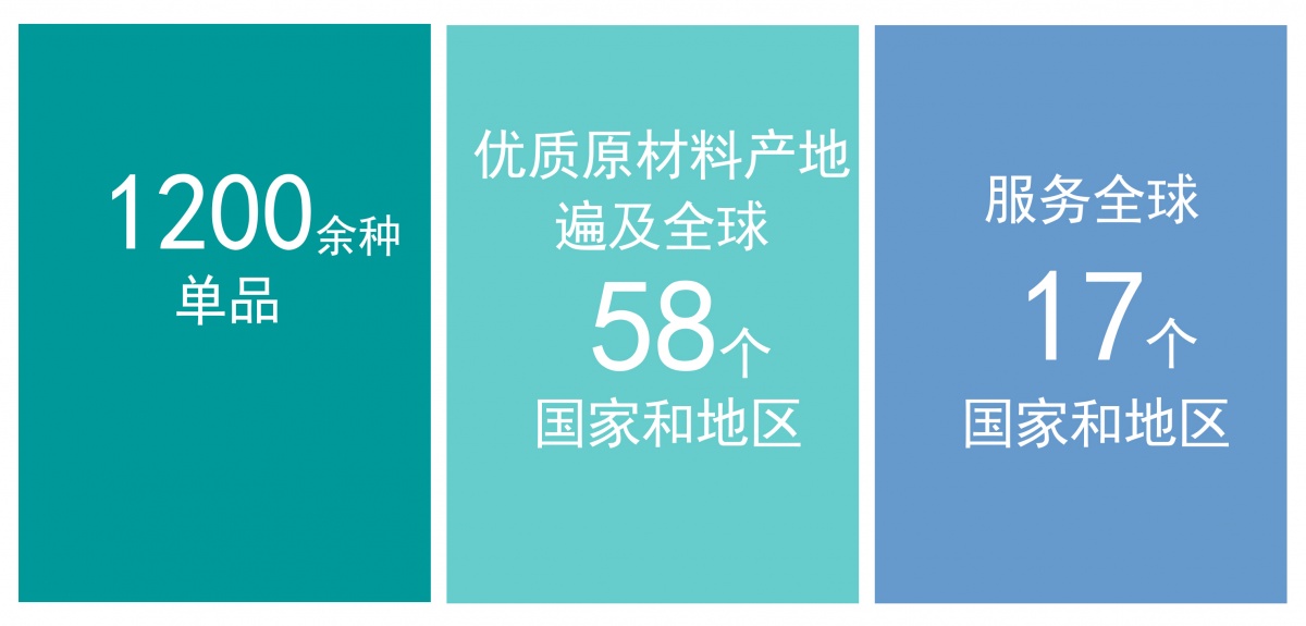 汇集58国营养,1200余种单品,康立民生优质原材料产地遍及全球58个国家和地区。服务大中华区、北美、欧州等17个国家。进入全球零售市场,为大众提供优质的产品与服务。
